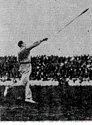 lanzó 82,80 m. en Madrid en 1956, pero no pudo acudir a los Juegos Olímpicos de Melbourne. La IAAF volvió a modificar el reglamento indicando que la punta de la jabalina
